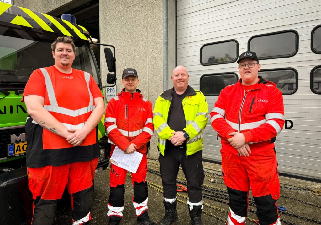 Egentlig var han gået gang med en mekanikeruddannelse, men så poppede en annonce for autohjælperuddannelsen op på Facebook. ”Jeg var ikke i tvivl om, at jeg skulle skifte uddannelse med det samme. Da jeg barn, når de andre kiggede på brandbiler, så kiggede jeg på fejeblade,” siger Kasper Jørgensen. Han er 20 år og holder en pause sammen med Magnus Trier Nielsen og Rasmus Lillelund Esbensen fra holdet. De er i gang med klargøringen efter to uger med bjergning, hvor holdet har været i Oksbøl for at lære, hvordan man bjærger forskellige køretøjer. Begejstringen for deres fag, lyser ud af dem.